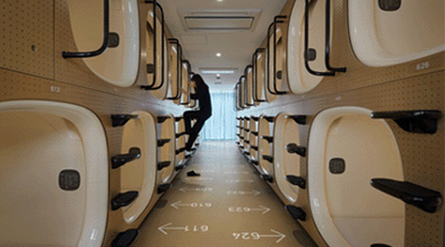 A kapszulaszállók, amikből valószínűleg sok sci-fi mozi látványtervezői inspirálódhattak, Japánban egyáltalán nem ritkák. Eredetileg kifejezetten sokat utazó üzletembereknek szánták olcsó minimál szállásként. A vendégeket kis rekeszekben helyezik el, melyeket jellemzően egy éjszakára lehet lefoglalni. Az elmúlt években az ilyen szálláshelyek is bővítették a szolgáltatásaikat, hogy más körből is be tudjanak vonzani ügyfeleket.