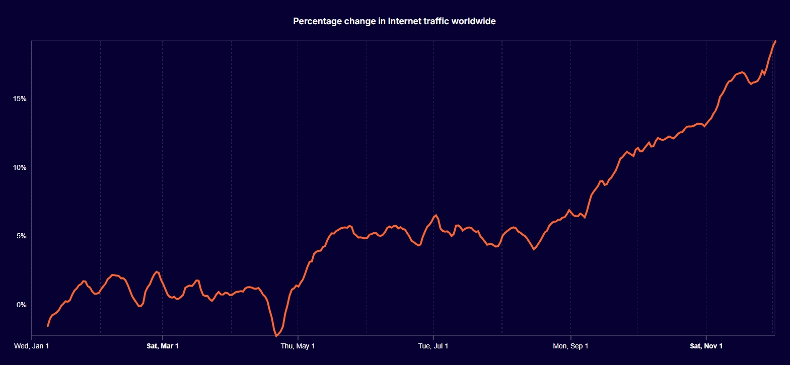Az internetforgalom idei alakulása az egy évvel korábbi szinthez képest (forrás: Cloudflare)