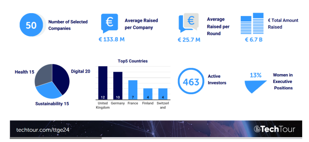 A listára 12 cég jutott az Egyesült Királyságból, tíz Németországból és hét Franciaországból. Utánuk Finnország és Svájc következik négy-négy céggel. Érdekes, hogy az elmúlt hat évben a hét francia, illetve a tíz német startup több pénzt gyűjtött, mint 12 brit: a német starupokba összesen 1,6 milliárdot, a franciákba 1,5 milliárdot, míg a britekbe csak 1,4 milliárdot fektettek. A négy finn összesen valamivel több mint 480 milliót, a négy svájci pedig 385 milliót kapott.