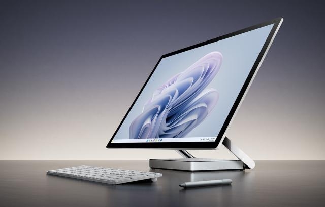 A Surface Studio 2+ 4500x3000 képpontos, 28 hüvelykes érintőképernyővel rendelkezik, amely grafikus táblagépként való használathoz összecsukható, a számításokért felelős rendszer pedig a tartó talapzatként is szolgáló dobozban kapott helyett.