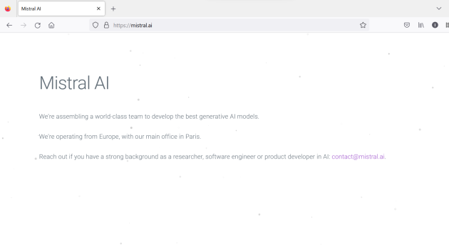 A Mistral AI honlapja, miután kaptak 105 millió eurót
