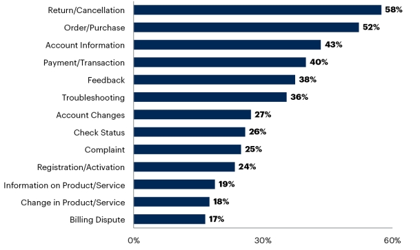 Chatbot közreműködésével megoldott ügyek aránya a probléma típusa szerint (Forrás: Gartner)